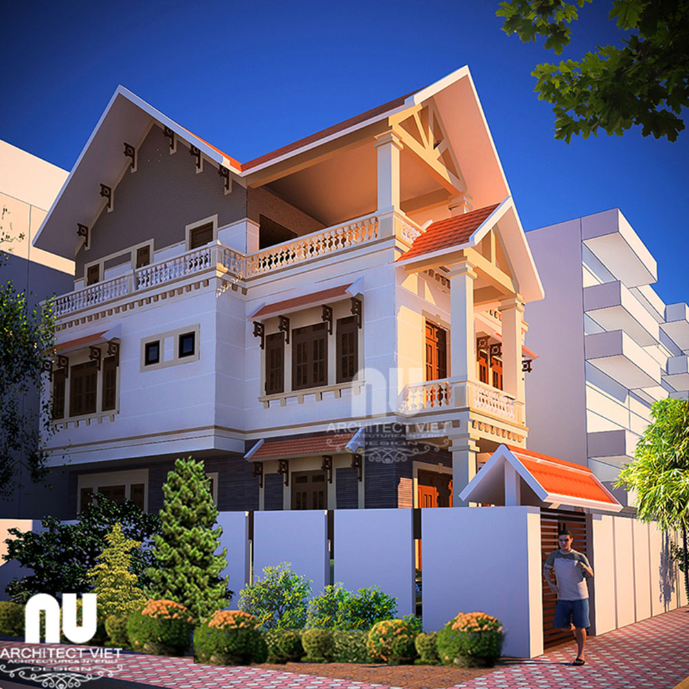 1 trệt 2 lầu 2 mặt tiền mái thái theo kiểu biệt thự mái thái hiện đại. Với